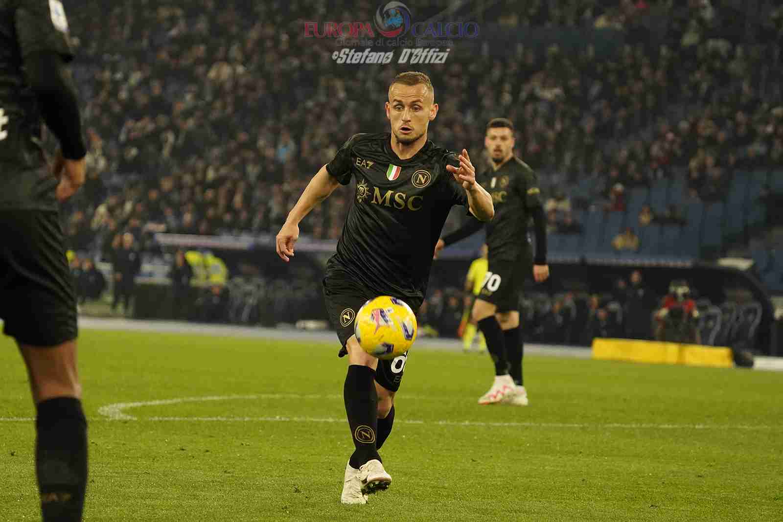 Dal lato opposto Gollini sostituisce Meret infortunato, Juan Jesus, Rahmani e Ostigard nella difesa a tre, Mario Rui e Di Lorenzo esterni con Demme e Lobotka a fare densità a centrocampo, mentre Zielinski e Politano trequartisti a rifinire palloni per Raspadori unica punta.