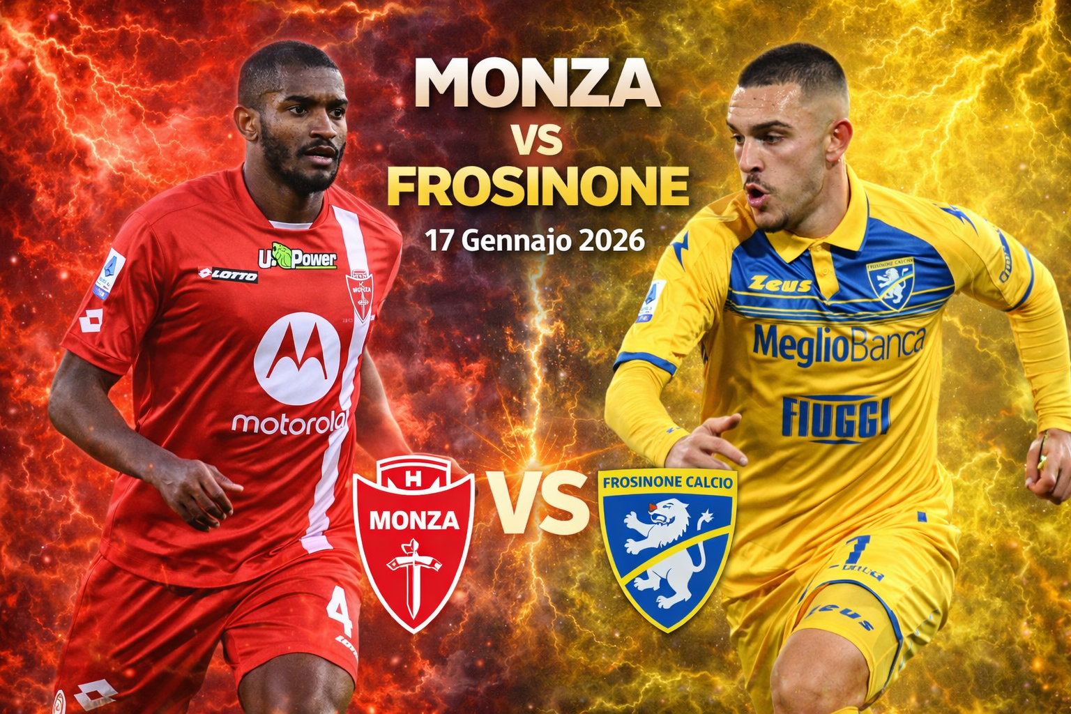 Il 17 gennaio 2026, il Monza ospita il Frosinone allo U‑Power Stadium nella 20ª giornata di Serie B. Si tratta di uno scontro di alta classifica: il Frosinone, attuale capolista, vuole consolidare il proprio primato, mentre il Monza cerca punti per restare agganciato alla zona promozione diretta.