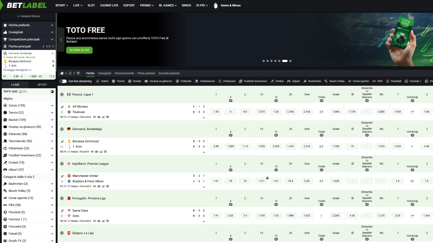 Oggi, quando il mercato delle scommesse online è sempre più competitivo, sarebbe folle per un brand rinomato non offrire tutti gli sport disponibili e un’ampia gamma di partite su di essi. È lo stesso con BetLabel, dove, oltre alle scommesse già popolari, puoi trovare varie combinazioni. Il calcio offre un’ampia gamma di handicap e “over-under” punti. Tutto sommato, l’offerta di questo brand è alla pari con la maggior parte delle società sul mercato, e l’unica cosa che vediamo come un potenziale miglioramento potrebbe essere l’introduzione del Bet Builder, un’opzione sempre più comune in vari bookmaker, che offre ai giocatori di combinare diverse scommesse all’interno dello stesso evento sportivo fino al momento in cui raggiungi una quota soddisfacente.