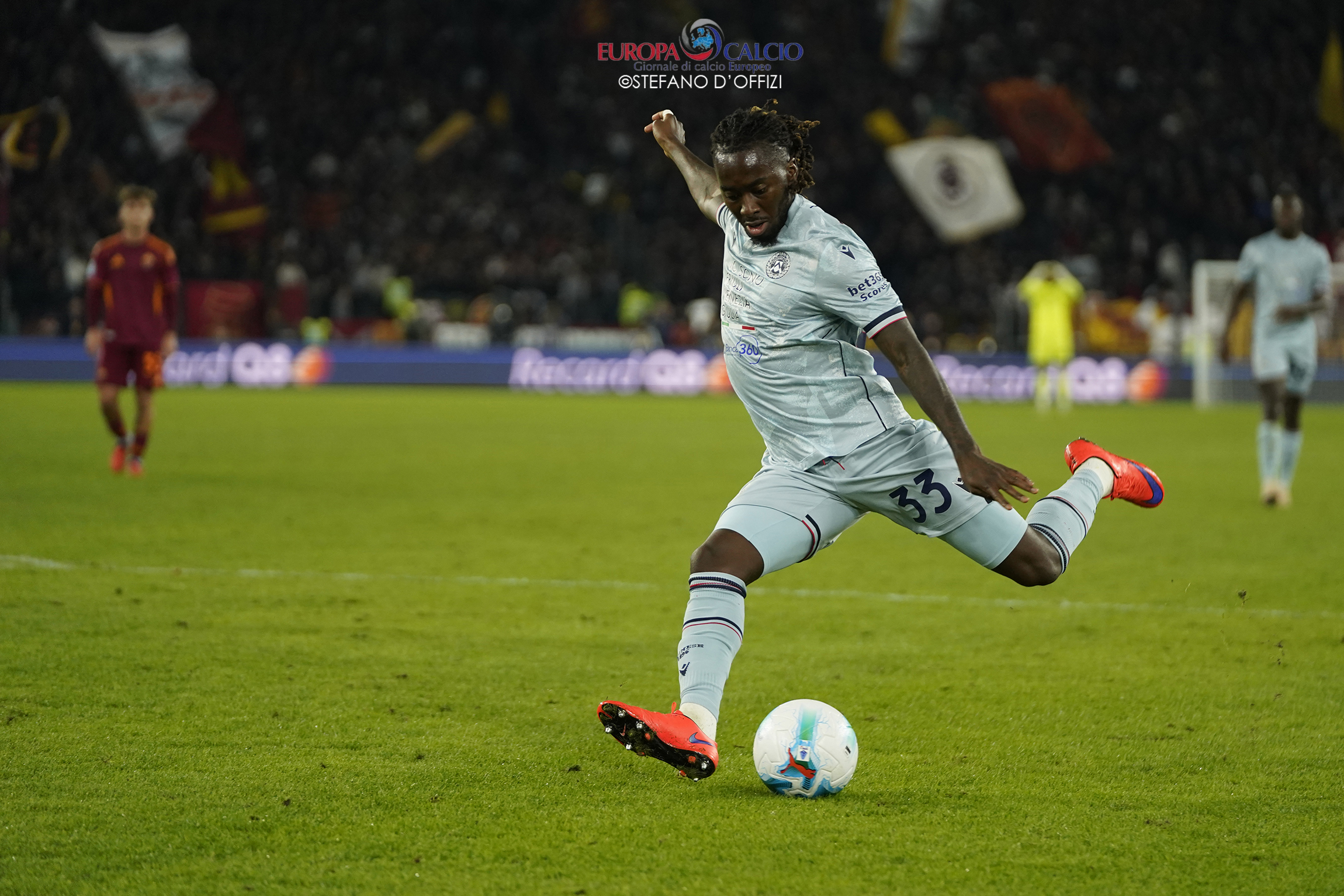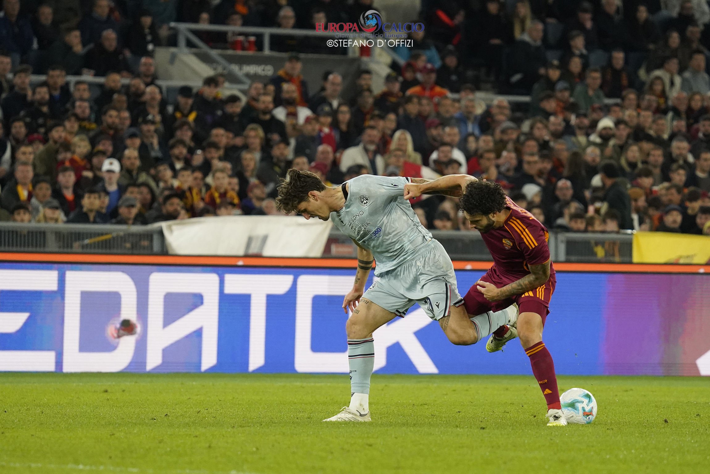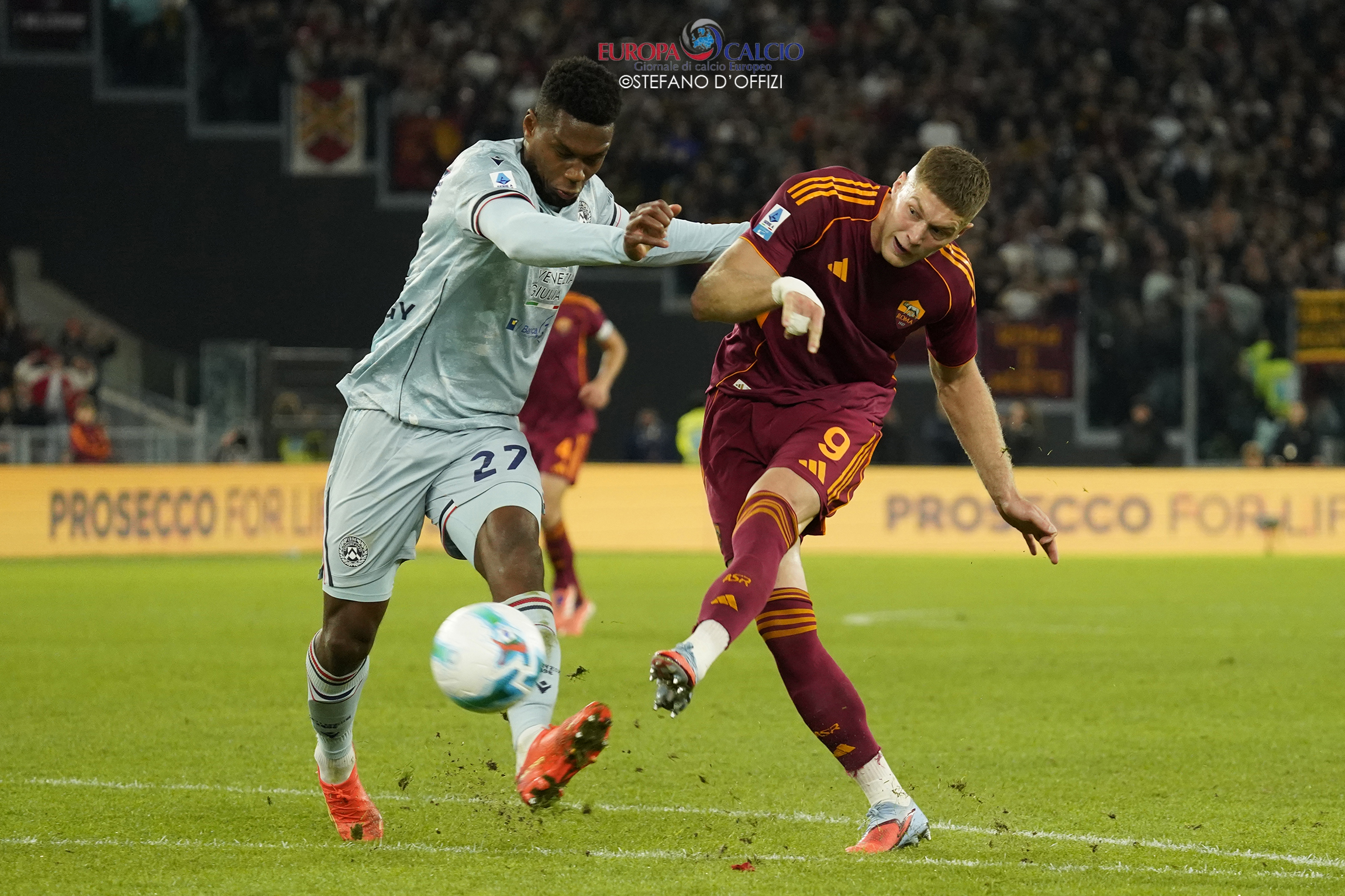 La squadra di Gian Piero Gasperini parte forte, domina il possesso e costringe gli ospiti nella propria metà campo. Al 41’, un fallo di mano in area friulana regala il rigore ai capitolini: dal dischetto Pellegrini non sbaglia, spiazzando il portiere e firmando l’1-0 che indirizza il match.